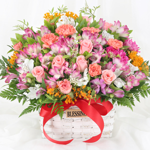 - 고급스러운 칼라안개 장미꽃바구니 [ST-A1588]